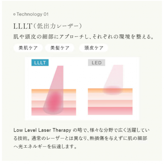 「LLLT」による光エネルギーなどの刺激で、頭皮や毛穴の細部にまでアプローチする「Scalpケアモード」を搭載。